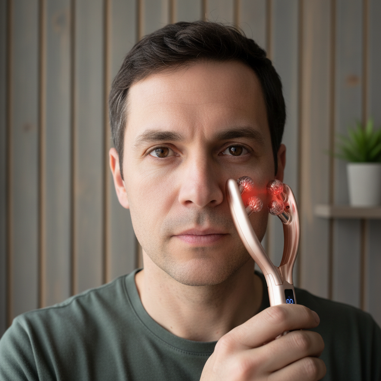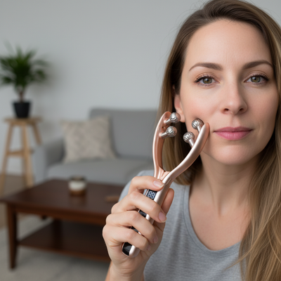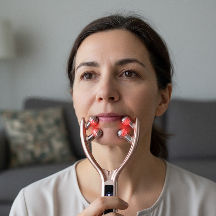 - Targets jawline and cheeks for sculpting - Boosts collagen and reduces inflammation - Eases muscle tension and drains lymph